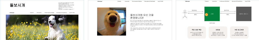 개요 경기 지역 반려견 돌봄 케어 서비스를 제공하는 웹페이지입니다.