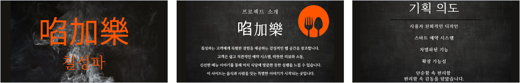 저희 팀에는 요식업 관련 종사자가 많았습니다. 그래서 저희는 요식업 경험을 바탕으로 다른 식당에서 느꼈던 개선할 점과 넣어보고 싶었던 기능들을 생각했습니다. - 식당 테이블을 어플로 통해서 직접 날짜와 시간을 선택한 후 예약을 할 수 있는 기능을 만들기를 목표로 두었습니다. - 정형화된 도시락 메뉴가 아닌 직접 원하는 반찬과 원하는 시간대로 고를 수 있는 기능을 목표로 했습니다. - 고객과 직원이 편안하게 정보를 얻을 수 있게 만들기를 목표를 두었습니다. - 관리자 직접 식당 홈페이지에서 직원들을 관리할 수 있게 만들었습니다. |