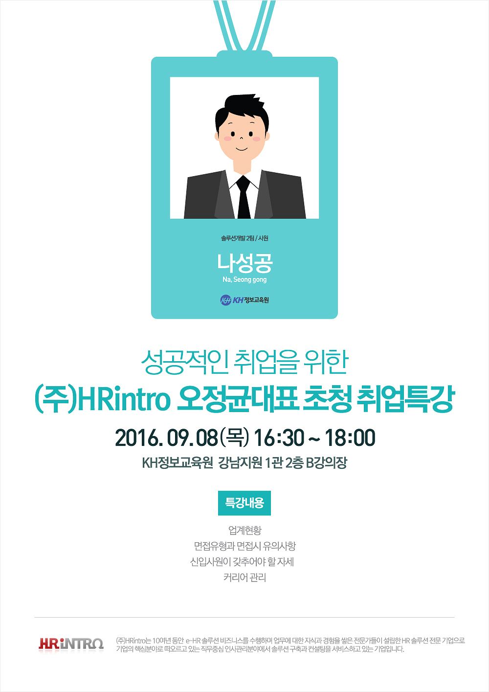 성공적인 취업을 위한 HR인트로 취업특강 안내문