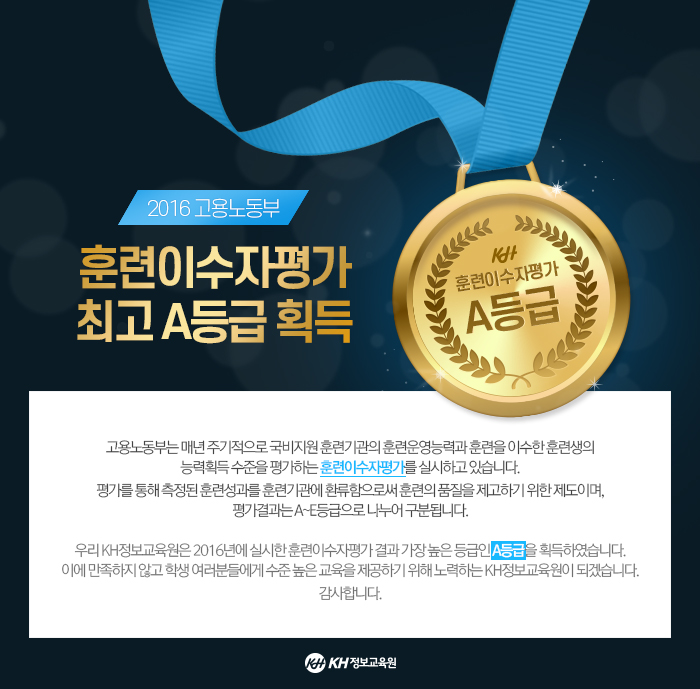 KH정보교육원, 훈련이수자평가 A등급!