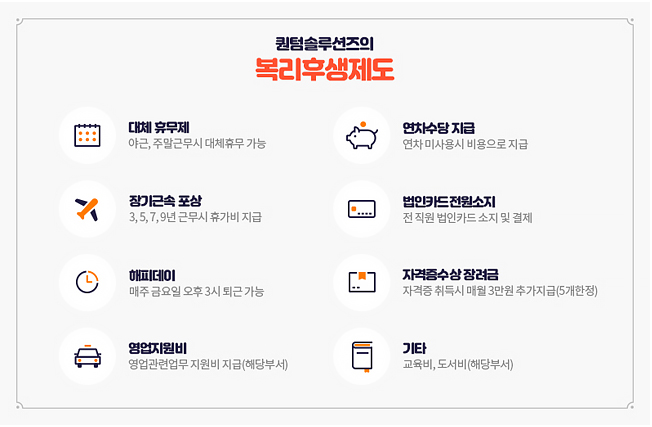 노력의 힘이네요. 대표님! 퀀텀솔루션즈의 복리후생제도도 궁금합니다.