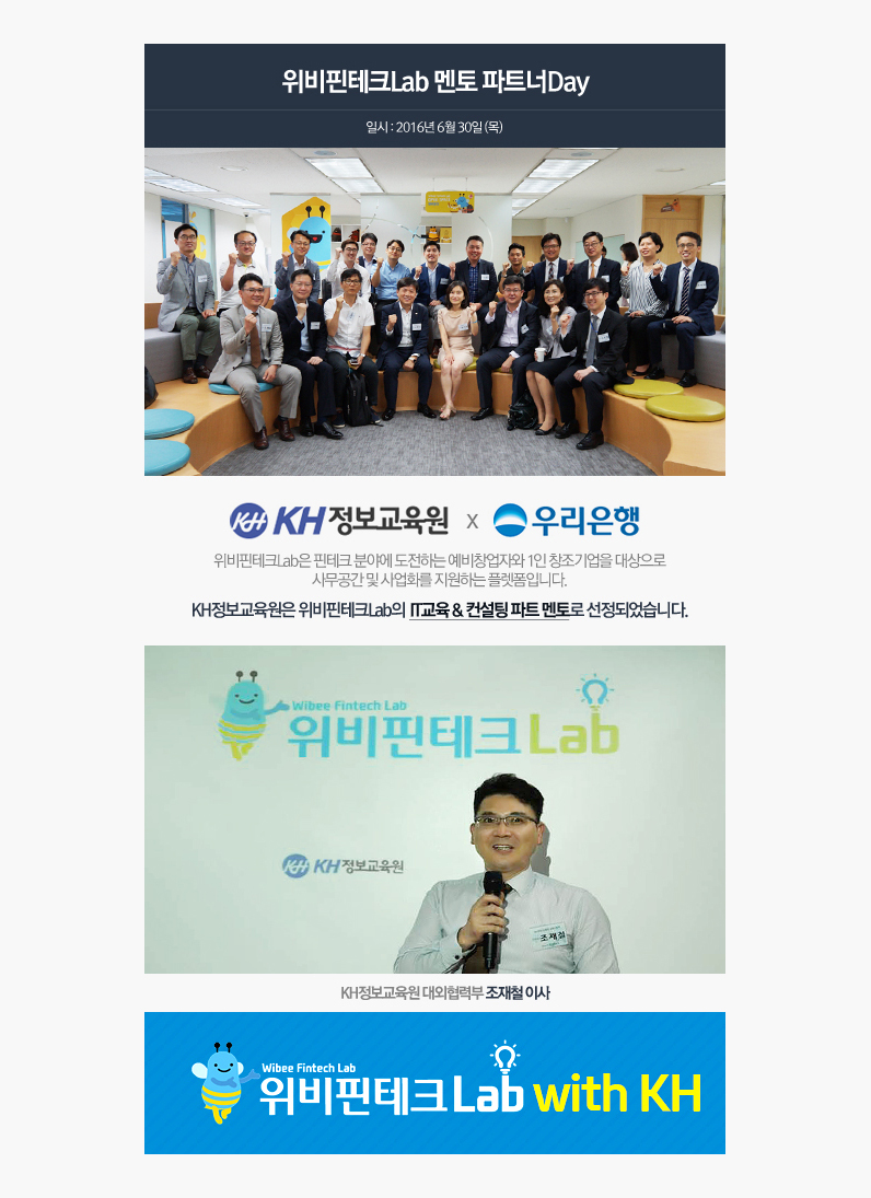 KH정보교육원, 위비핀테크Lab의 IT교육 & 컨설팅 파트 멘토 선정
