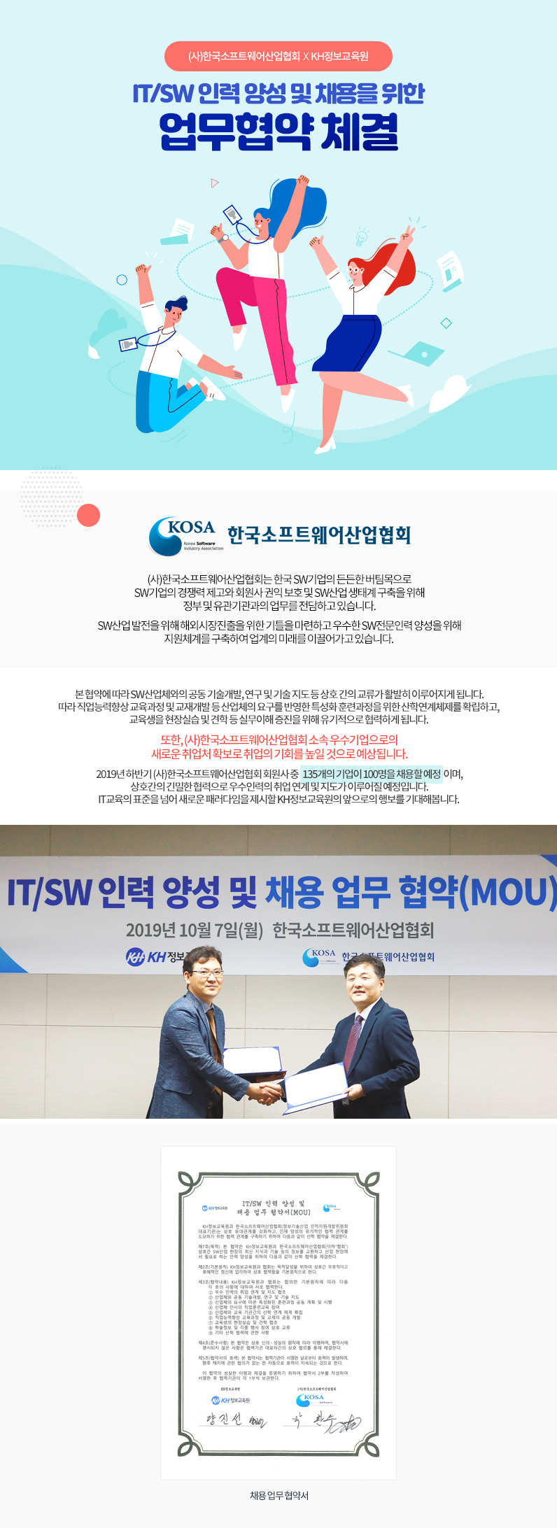 KH정보교육원/(사)한국소프트웨어산업협회 IT/SW 인력 양성 및 채용을 위한 업무협약 체결