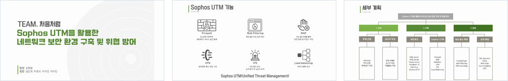 최근 들어 원격근무의 일상화와 더불어, 사이버 위협이 갈수록 다양화됨에 따라 기업의 업무망을 보다 정밀하게 보호할 수 있는 네트워크 보안 체계의 필요성이 강조되고 있다. 본 프로젝트는 Sophos UTM이 제공하는 다양한 보안 기능 WAF(Web Application Firewall), ACL(Access Control List), IPS(Intrusion Prevention System), 웹 필터링(Web Filtering), VPN(Virtual Private Network)을 종합적으로 사용하여, 외부로부터의 비인가 접근을 효과적으로 차단하고 내부 자산에 대한 침해를 방지할 수 있는 종합 보안환경 구축을 목표로 한다. |
